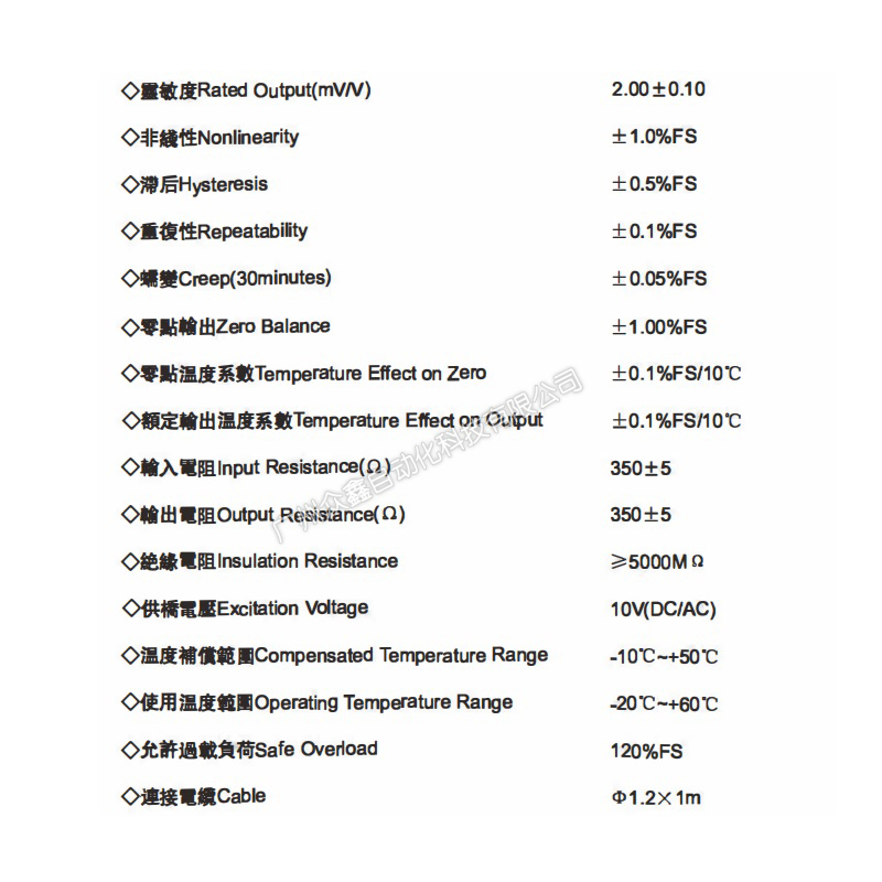 四、MIN-5lb微型測力傳感器技術(shù)參數(shù)