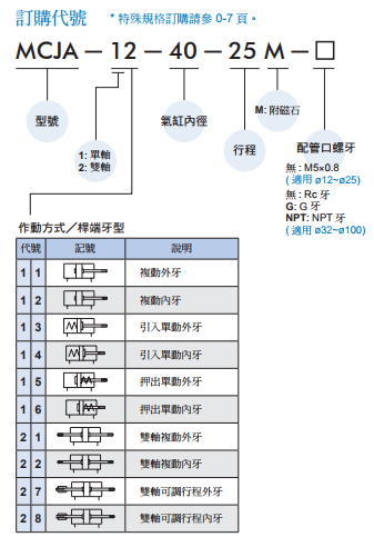MCJA氣缸型號(hào)訂購(gòu)碼: