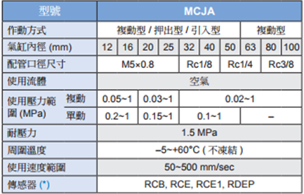 MCJA氣缸產(chǎn)品規(guī)格