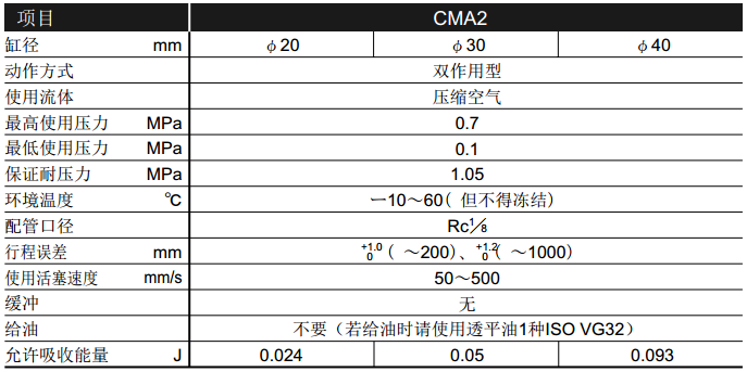 CMA2氣缸產(chǎn)品規(guī)格: