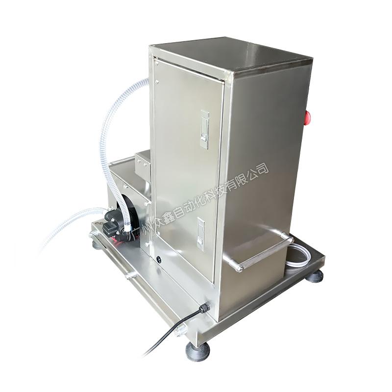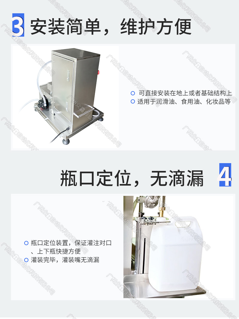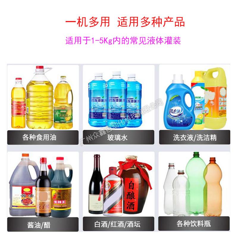 純電泵直接抽料,不用壓縮空氣,變頻器控制泵的流速、先快后慢,稱重式灌裝。機(jī)器主體采用不銹鋼材質(zhì),灌裝容量1-5L,分裝為主。此型號(hào)機(jī)器可灌注大部分高低粘度,無(wú)顆粒、非爆性液體,廣泛應(yīng)用于潤(rùn)滑油、食用油、玻璃水、洗潔精、油墨、酒水、聚氨酯、化妝品日化等行業(yè)。