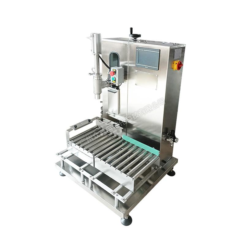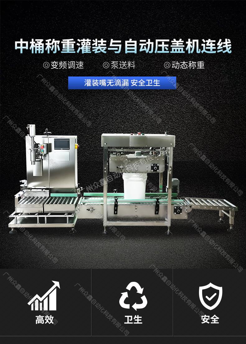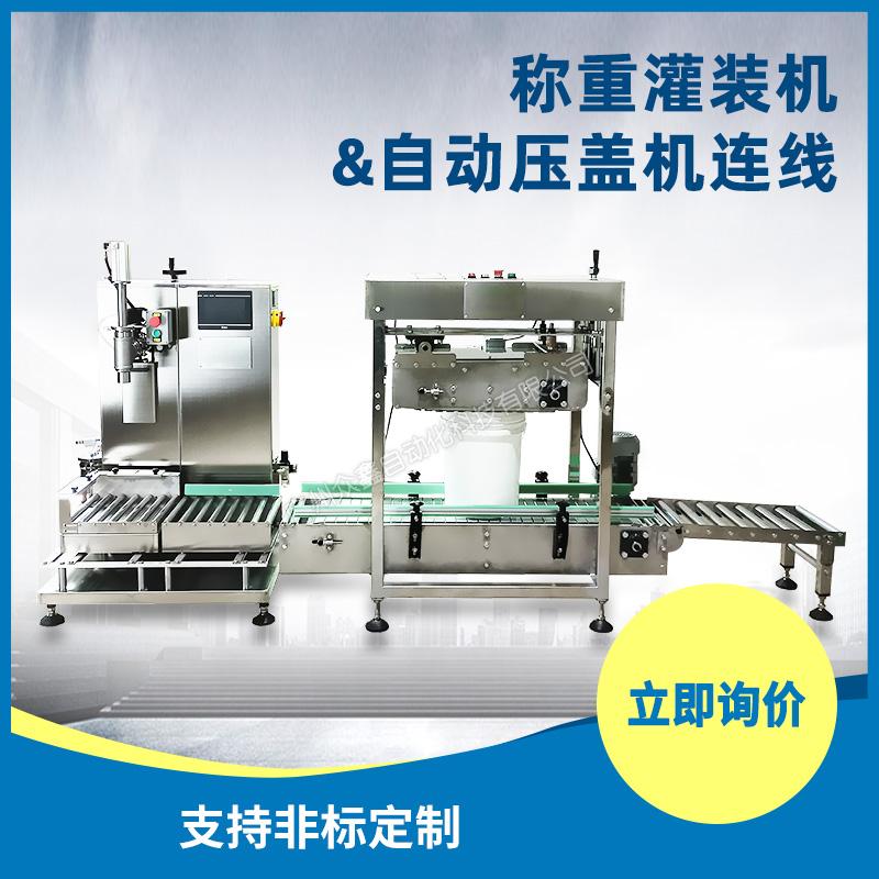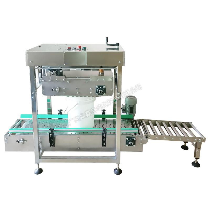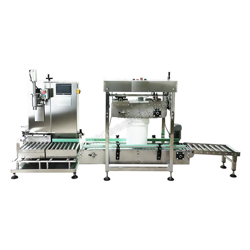 3、輥筒秤臺(tái),并配置一個(gè)放蓋工位,可在線自動(dòng)化配置自動(dòng)壓蓋機(jī)(18-25L敞口塑料桶);