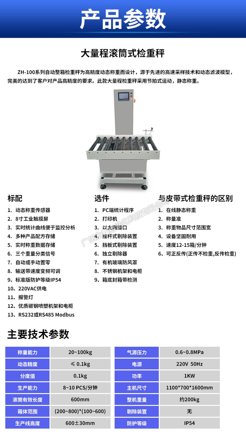 ZH-100系列自動整箱檢重秤為高精度動態(tài)稱重而設(shè)計,源于先進的高速采樣技術(shù)和動態(tài)濾波模型,完美的達到了客戶對產(chǎn)品高精度的要求。此款大量程檢重秤采用節(jié)拍式運動,靜態(tài)稱重。