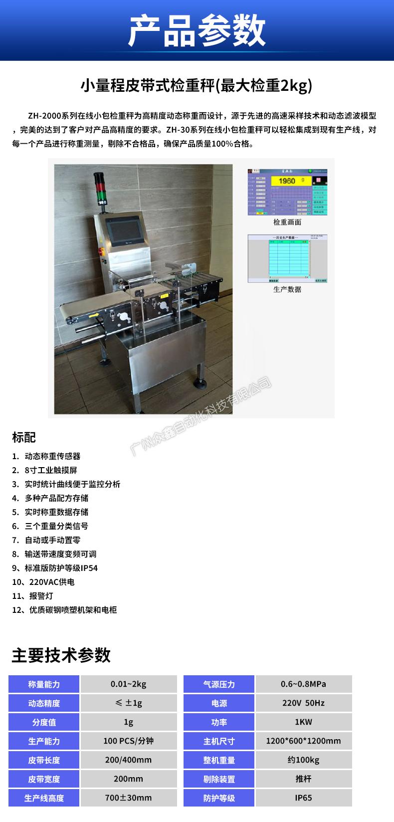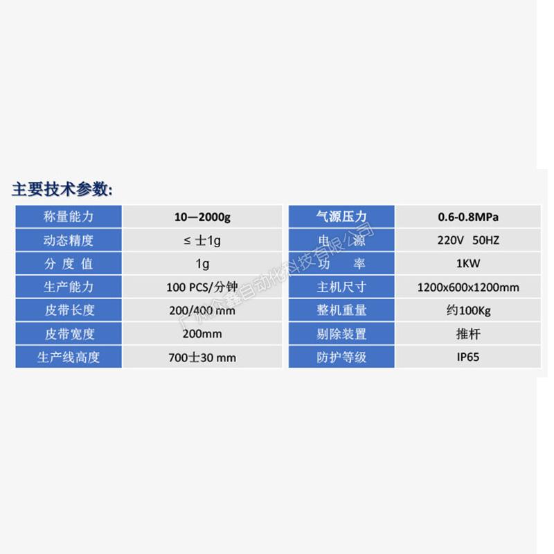 小量程皮帶式檢重秤(最大檢重2kg)產(chǎn)品參數(shù)