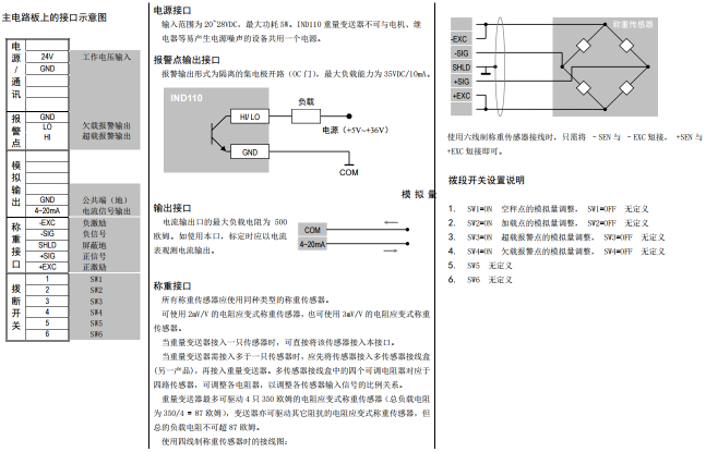稱重接口:激勵電壓為10VDC,最多可接4只350歐姆的電阻應(yīng)變式稱重傳感器