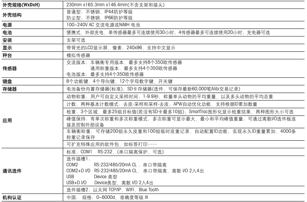 IND245稱重儀表技術規(guī)格
