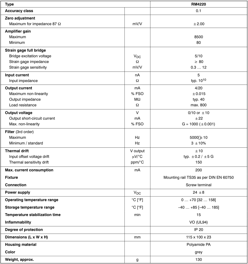 德國HBM RM4220系列技術數(shù)據(jù)