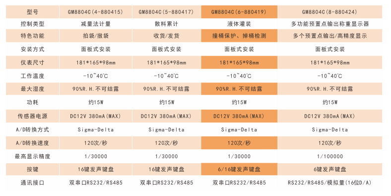 GM8804C6是液體灌裝秤專用控制儀表,擁有撞桶保護(hù)以及掉桶檢測(cè)等功能,功能齊全,方便實(shí)用。廣泛應(yīng)用于飼料、化工、糧食、建材等行業(yè)