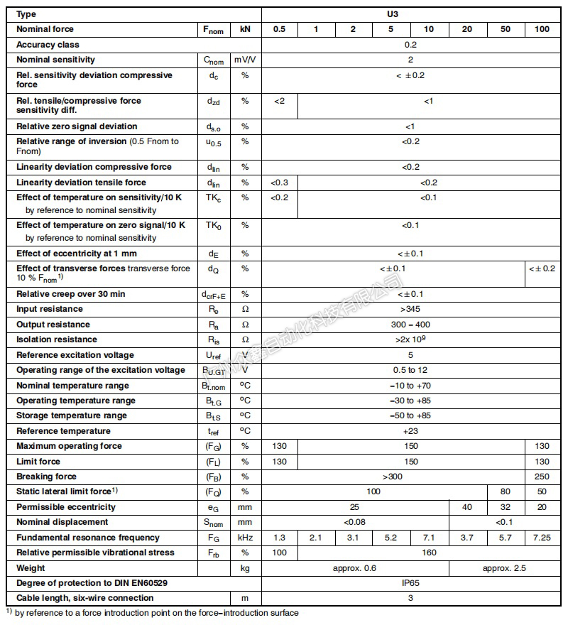二、U3/100KN力傳感器全部型號