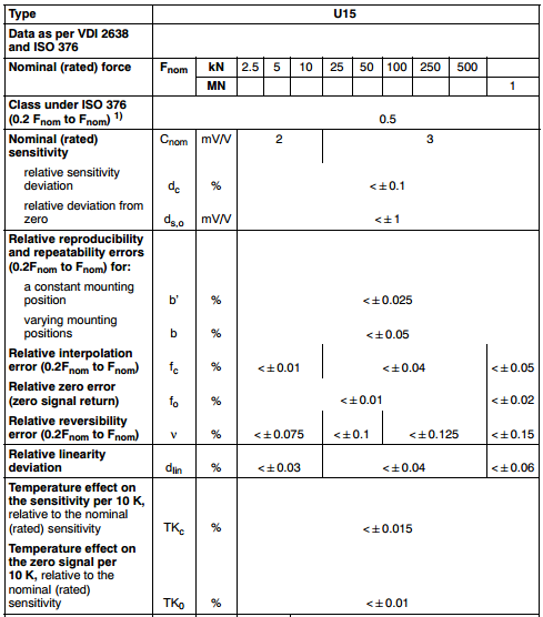 德國HBM力傳感器U15系列產(chǎn)品參數(shù):