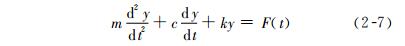 眾所周知,在電氣系統(tǒng)中具有R、L、C 的電路呈現(xiàn)二階頻率響應(yīng)。同樣,對于具有阻尼、質(zhì)量和彈簧的機(jī)械系統(tǒng)(圖2-6),如測力和測量震動(dòng)的傳感器,也有類似的特性。根據(jù)力平衡原理,可列出微分方程