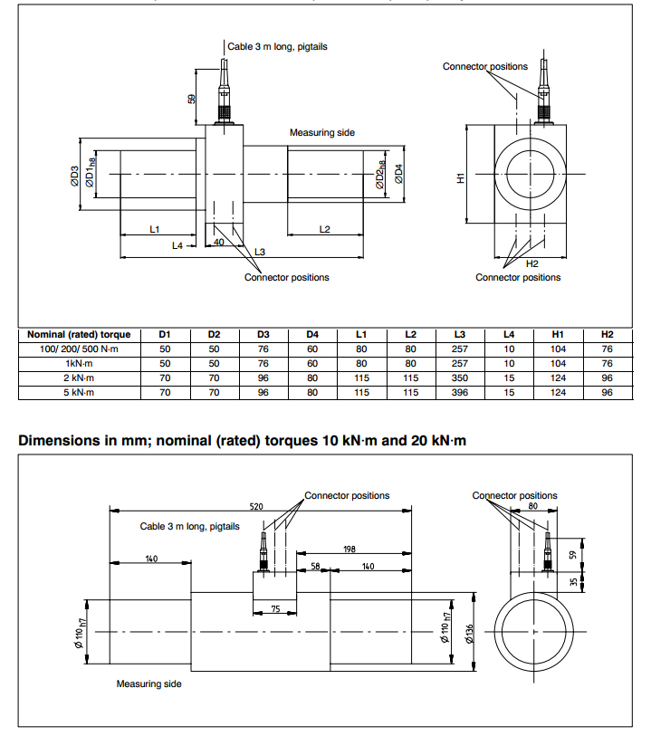 額定扭矩100 N?m, 200 N?m, 500 N?m, 1 kN?m, 2 kN?m, 5 kN?m. 10 kN?m 和 20 kN m