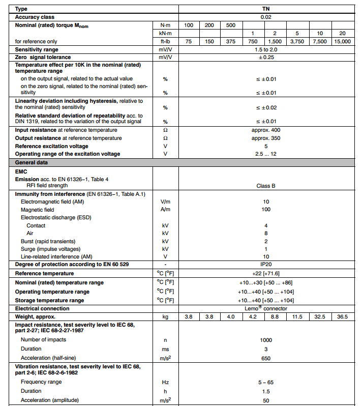 德國HBM扭矩傳感器 TN系列相關型號:TN/100Nm,TN/200Nm,TN/500Nm,TN/1kNm,TN/2kNm,TN/5kNm,TN/10kNm,TN/20kNm。