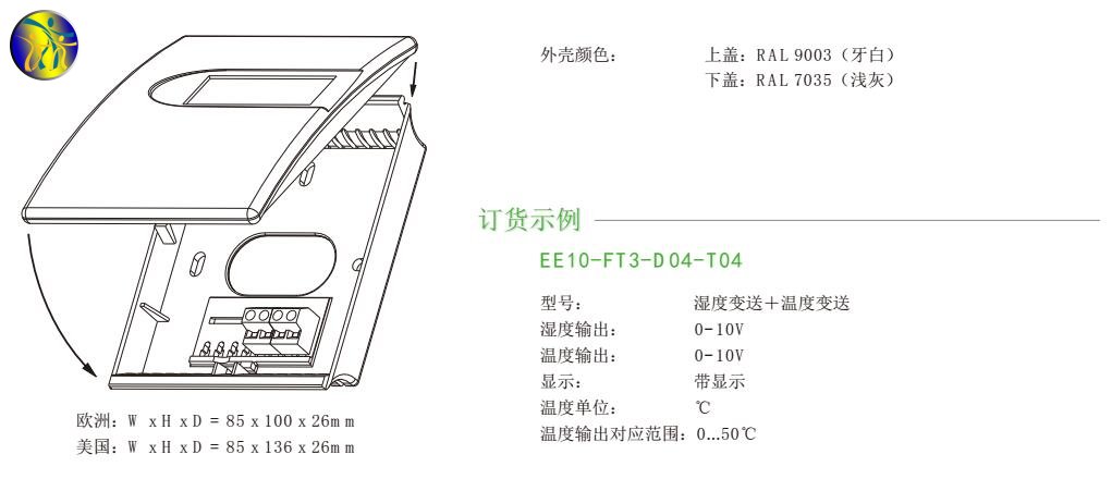 ★EE10系列有兩種外型設(shè)計(jì)以滿足不同地區(qū)標(biāo)準(zhǔn),且所有產(chǎn)品都可以配置清晰的液晶顯示模塊用以現(xiàn)場的溫濕度顯示。