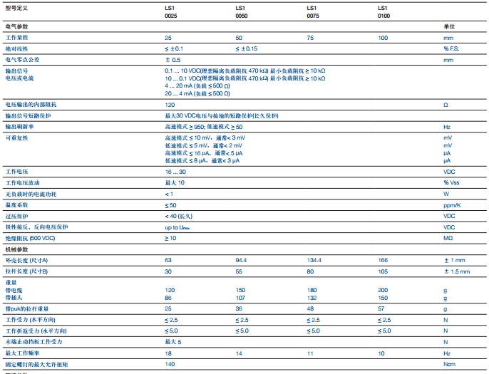 德國(guó)NOVOTECHNIK位移傳感器LS1系列產(chǎn)品參數(shù):