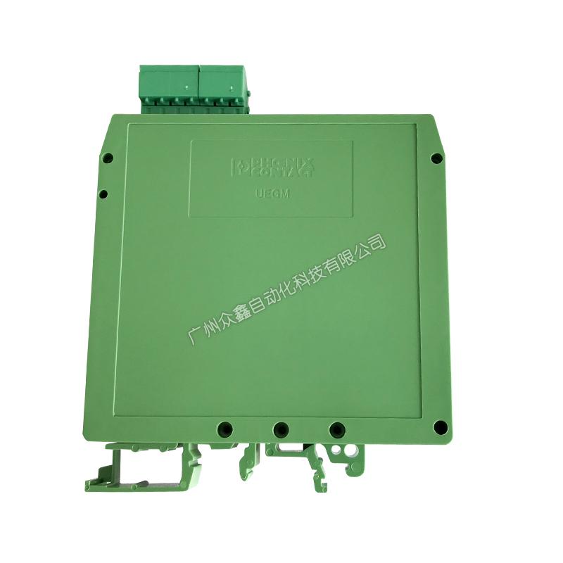 該產(chǎn)品電路被封裝在一個絕緣塑料機殼內(nèi),此機殼可以固定在標準的 EN 50222 安裝軌道上。