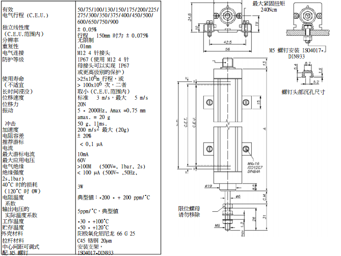 直線位移傳感器主要用于控制、調(diào)節(jié)和測量系統(tǒng)中對位移和長度的直接精確測量,無拉桿設計使傳感器電刷在傳感器側面,沿傳感器長度方向移動,這樣就避免了一般傳感器常見的由于“泵”效應引起的傳感器失效問題,并且量程可達3000豪米。新穎的球絞使由于不平或傾斜產(chǎn)生的扭力得到釋放,傳感器的承受拉力均勻。安裝卡具可以進行微調(diào)。基于材料和工藝的關系,位移傳感器的溫度系數(shù)極低,堅固的結構和材料使傳感器可以在惡劣的溫度和震動條件下可靠工作。傳感器測量原理簡單,無源以及絕對值輸出使得它不受外界的電磁影響,同時它不需要內(nèi)置電源,能在斷電時保持實時位移數(shù)據(jù)。