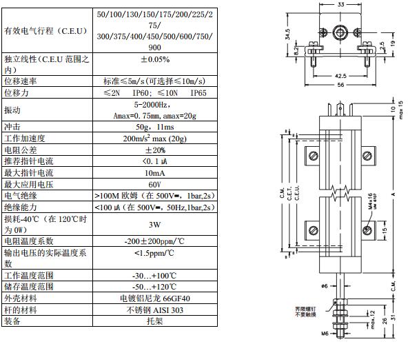 直線位移傳感器主要用于控制、調(diào)節(jié)和測(cè)量系統(tǒng)中對(duì)位移和長(zhǎng)度的直接精確測(cè)量,無(wú)拉桿設(shè)計(jì)使傳感器電刷在傳感器側(cè)面,沿傳感器長(zhǎng)度方向移動(dòng),這樣就避免了一般傳感器常見(jiàn)的由于“泵”效應(yīng)引起的傳感器失效問(wèn)題,并且量程可達(dá)3000豪米。新穎的球絞使由于不平或傾斜產(chǎn)生的扭力得到釋放,傳感器的承受拉力均勻。安裝卡具可以進(jìn)行微調(diào)?;诓牧虾凸に嚨年P(guān)系,位移傳感器的溫度系數(shù)極低,堅(jiān)固的結(jié)構(gòu)和材料使傳感器可以在惡劣的溫度和震動(dòng)條件下可靠工作。傳感器測(cè)量原理簡(jiǎn)單,無(wú)源以及絕對(duì)值輸出使得它不受外界的電磁影響,同時(shí)它不需要內(nèi)置電源,能在斷電時(shí)保持實(shí)時(shí)位移數(shù)據(jù)。