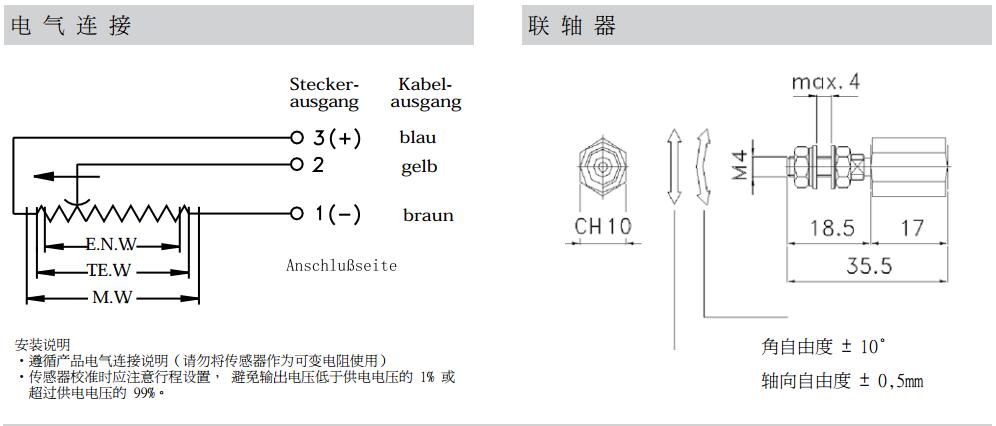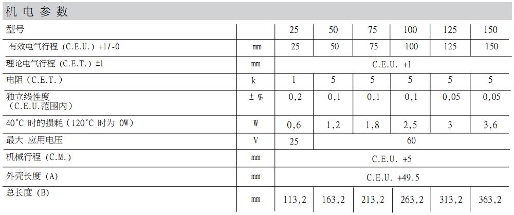 PA1-C-075 描述PA1位移傳感器,5 針接頭輸出,有效電氣行程 (C.E.U.) 75mm
